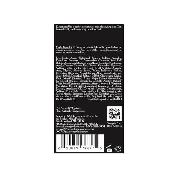 Brickell Men’s Hidratante en Gel Antienvejecimiento Rejuvenecedor para Hombres, Natural y Orgánico, Humectante de Rápida Absorción que Reduce las Líneas Finas y las Arrugas (Perfumado, 118 ml)